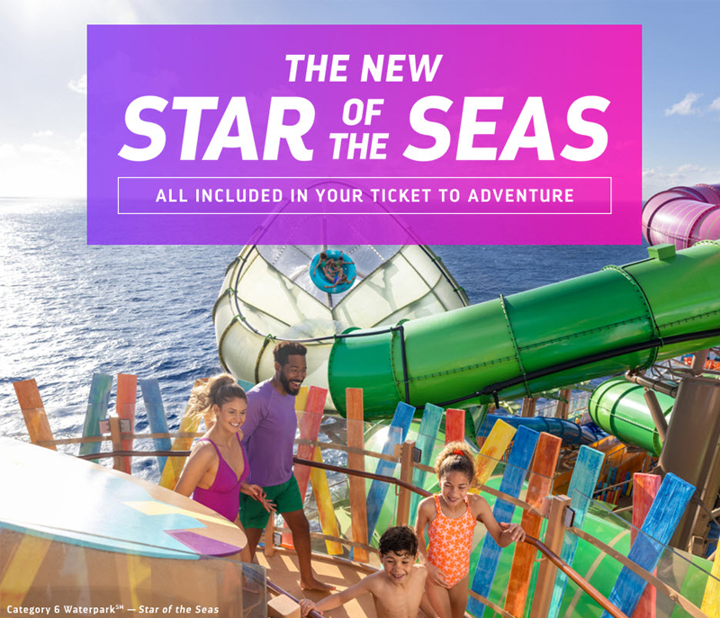 Spend 7 nights of adventure during your cruise on Royal Caribbean’s Newest Ship: Star of the Seas. It all begins when you sail from Orlando (Port Canaveral), Florida and the Royal Caribbean award-winning private island, Perfect Day at CocoCay.