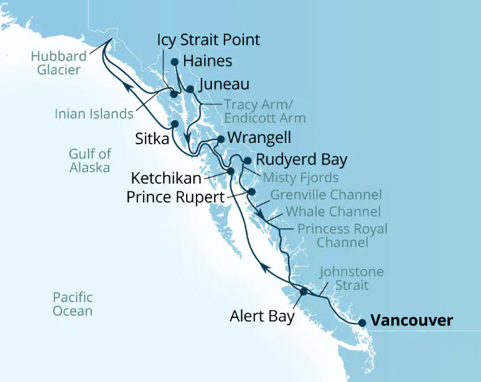 July 30, 2026 | Thurs. | Haines, Alaska and Cruising Lynn Canal | 6:00am | 6:00pm |