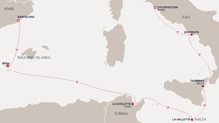 | Aug. 10, 2026 | Mon. | Civitavecchia (Rome), Italy | 7:00am |