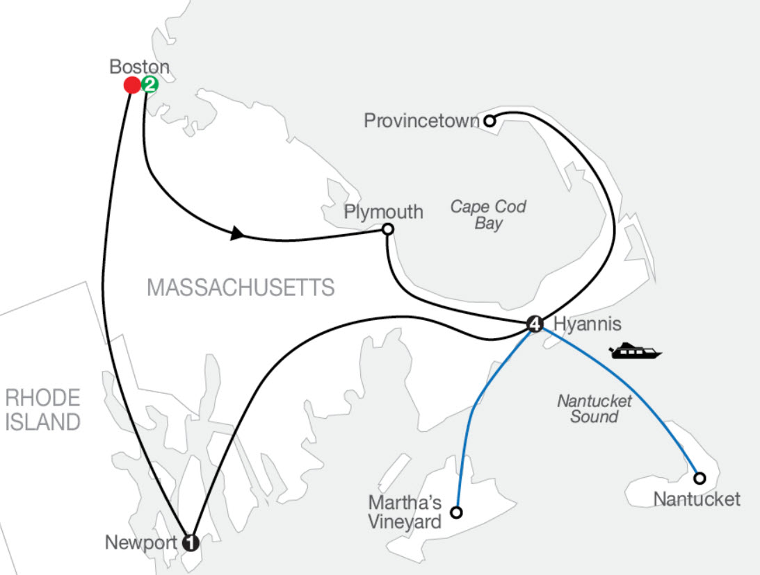 With the seaside town of Hyannis as home base, you’ll ferry to see the gingerbread cottages of Martha’s Vineyard and the imposing mansions of Nantucket. Plus, an excursion to colorful Provincetown, a favorite summer hub for artists and writers. Boston’s grand history and Newport’s colossal “cottages” – including Cornelius Vanderbilt’s The Breakers – offer giant glimpses into New England’s rich past. This Cape Cod and the islands tour also includes a visit to Plymouth to see where the pilgrims landed and give thanks for the freshest seafood you’ve ever tasted! PLUS, your tour includes your choice of excursions in Newport so you can plan your day your way.