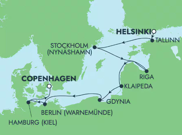 Set sail on an unforgettable 9-day journey through the Baltic Sea, beginning in the vibrant city of Helsinki and ending in the charming streets of Copenhagen. Throughout this voyage, Northern Europe’s rich history, captivating culture, and stunning beauty will reveal themselves at every turn. In Tallinn, Estonia, explore the medieval streets of Old Town or admire the grandeur of the Alexander Nevsky Cathedral. In Nynäshamn, Sweden, you can immerse yourself in Stockholm’s royal history at the Royal Palace or treat yourself to traditional Swedish delicacies on a culinary tour. Gdańsk invites you on a scenic drive to discover the wonders of Oliwa Cathedral, the Green Gate, and the historic Nowy Port lighthouse. Finally, Copenhagen beckons with a stroll along the colorful Nyhavn waterfront or a visit to the majestic Amalienborg Palace.